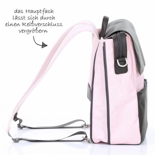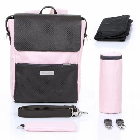 Im Wickel-Rucksack City mit Deckelfach im Design Rose von ABC Design werden alle Dinge, die Du und Dein Baby unterwegs brauchen, besonders stilvoll transportiert. Der schicke Rucksack beinhaltet bereits wichtiges Zubehör, vom isolierten Flaschenhalter bis zur Wickelunterlage. Das stylishe Design mit Elementen in edler Lederoptik gefällt Mama und Papa gleichermaßen gut.