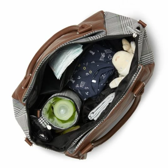Die clevere Aufteilung der Wickeltasche bietet nicht nur extra viel Stauraum, sondern auch jede Menge Möglichkeiten, nützliche Utensilien für unterwegs sicher und schnell auffindbar zu verräumen. Windeln, Feuchttücher, Wechselkleidung & Co finden problemlos Platz in dem großen, nach außen mit Reißverschluss und Magnet gesicherten, Hauptfach. Zwei zusätzliche Außenfächer, ebenfalls mit Magnetverschluss, sowie mehrere Innenfächer in unterschiedlichen Größen sind ideal für die vielen Kleinigkeiten, die unterwegs mit Baby unverzichtbar sind. Integriert sind außerdem eine hygienische Wickelunterlage, ein isolierter, herausnehmbarer Flaschenhalter mit Clip zur Befestigung am Kinderwagen, eine extra Utensilientasche sowie ein wasserabweisendes Feuchtfach.