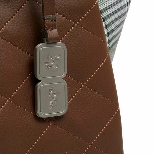 Kleine Metallfüße am Taschenboden sorgen für einen sicheren Stand und Schutz vor Verunreinigungen.