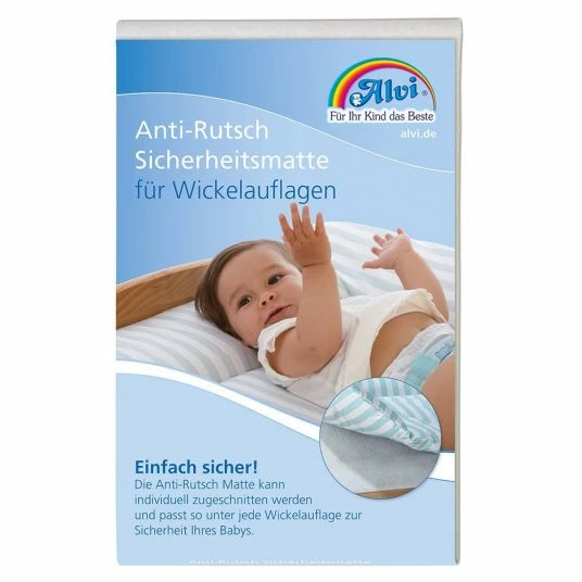 Die weiße Anti-Rutschunterlage für Wickelauflagen von Alvi sorgt für mehr Sicherheit beim Wickeln. Babys bleiben oft nicht ruhig liegen, wenn ihnen die Windeln gewechselt werden. Damit die Wickelauflage aber trotzdem nicht verrutscht, legst Du einfach die Anti-Rutschmatte darunter. Du kannst die Unterlage auf jedes gewünschte Maß zuschneiden.