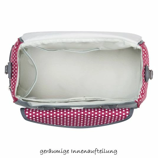 The diaper bag can easily be opened with just one hand and is equipped with many useful pockets. You can store diapers, toys, care products and your personal items in it. So everything is well laid out and still within easy reach. Thanks to the adjustable carrying strap, you can comfortably place the bag over your shoulder or attach it to the pram using the two straps. So you always have them with you and are fashionably fully in line with the latest trends.