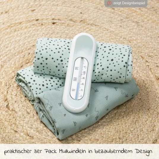 - praktischer 3er Pack Mullwindeln in bezauberndem Design