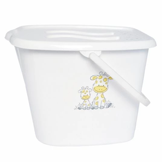 Der weiße Windeleimer Giraffe von Bieco ist optimal, um die benutzten Windeln Deines Kindes darin zu entsorgen und mit dem Deckel fest zu verschließen. Der Eimer hat einen praktischen Bügelgriff und ist auch optisch ein Hingucker. Du kannst den Windeleimer ganz einfach mit Seifenwasser reinigen und dieses anschließend; durch die schnabelförmige Vertiefung an der Seite, ausgießen.