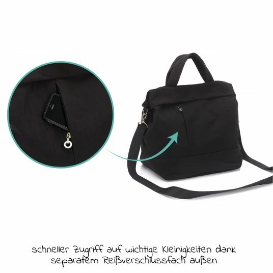Die kompakte Tasche mit praktischem Doktortaschenverschluss bietet Dir jede Menge an Stauraum dank großem Hauptfach und vieler durchdachter Innenfächer sowie einem Außenfach mit Reißverschluss für Wertgegenstände. Sämtliche Steckfächer bieten genügend Platz für Feuchttücher und Windeln. Mit wenigen Handgriffen hast Du alles parat und kannst Deinen kleinen Schatz bequem überall wickeln.