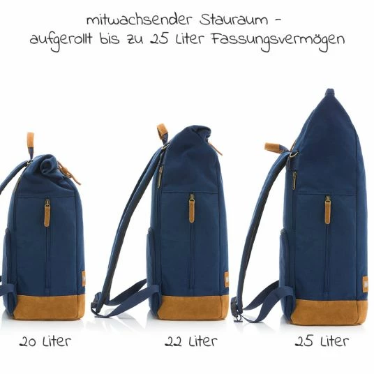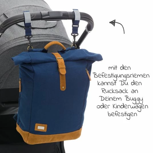 Es muss nicht immer eine klassische Wickeltasche sein: Wer beide HΓ€nde unterwegs frei haben und dennoch alles Wichtige zum Wickeln dabei haben mΓΆchte, findet im Wickelrucksack Rolltop Canvas mit Echtlederapplikationen – Β NavyΒ von Fillikid den idealen Begleiter. Der Rucksack sorgt dank seiner Γffnung im Rolltop-Styl fΓΌr FlexibilitΓ€t. Muss mal etwas mehr mitgenommen werden, rollst Du den Rucksack auf und hast im Handumdrehen zusΓ€tzlichen Stauraum oder Platz fΓΌr lΓ€ngliche GegenstΓ€nde. Zusammengerollt lΓ€sst er sich einfach mit einem Magnetverschluss schlieΓen. Der sportliche Rucksack ist aus hochwertigem Canvas gefertigt – robustem Leinen Segeltuch aus reiner Baumwolle. VerschlΓΌsse und Applikationen aus echtem Leder.