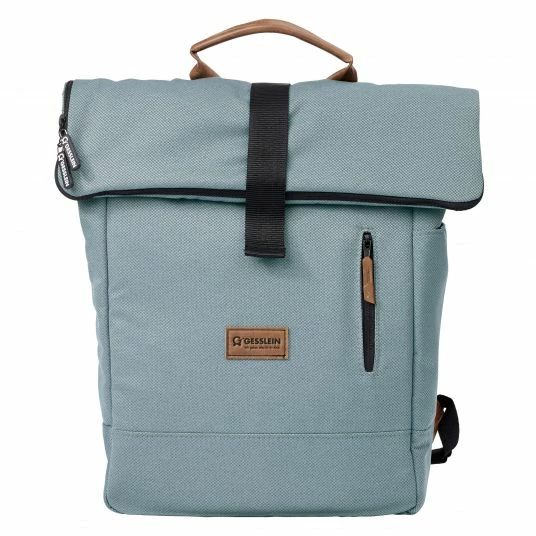 Im 2 in 1 Wickelrucksack & Wickeltasche N°6 von Gesslein in Aqua Mint weißt Du alles für Deinen Nachwuchs verstaut was Du für unterwegs brauchst. Der Rucksack in zeitlosem Unisex-Design beinhaltet bereits eine Wickelunterlage und praktische Haken für die Befestigung am Schiebegriff Deines Kinderwagens oder Buggys. Die insgesamt 6 geräumigen Innenfächer, die Foldtop Optik und Details in Lederoptik gefallen Mamas und Papas gleichermaßen gut.