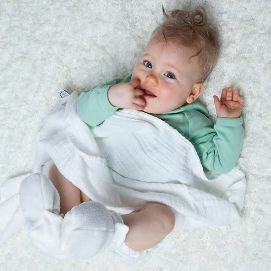 Der kuschelweiche Stoff der Mullwindeln überzeugt dabei mit sehr saugfähigen und atmungsaktiven Eigenschaften. Bestehend aus 100% Bio-Baumwolle aus kontrolliert biologischem Anbau, ist er für die zarte Babyhaut sehr angenehm. Das Material ist sehr widerstandsfähig und wird Dir für lange Zeit treue Dienste leisten.