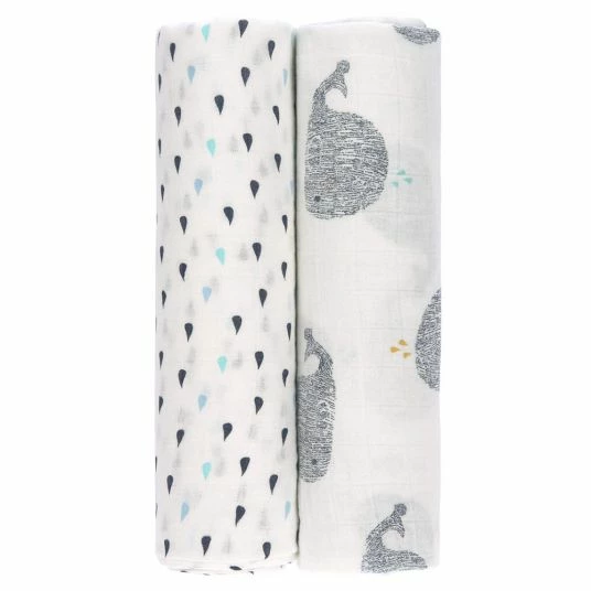Die hübschen XL Einschlag- & Mulltücher Heavently Soft – Little Water Wale im 2er Pack von Lässig sind echte Allrounder. Du kannst die weichen Tücher als Spucktuch, Kinderwagendecke, Wickelunterlage, Schmusetuch oder zum Pucken verwenden. Sie sind zu 70 % aus nachhaltiger Viskose aus Bambusfaser und zu 30 % aus Baumwolle gefertig. Die atmungsaktiven Mulltücher sind sehr weich und werden nach jedem Waschen noch weicher. Bambus ist darüber hinaus ein sehr hautfreundliches Material und wird gleichzeitig ressourcenschonend gewonnen. Du erhältst zwei der multifunktionalen XL-Tücher, die mit unterschiedlichen, fröhlichen Aufdrucken verziert sind.