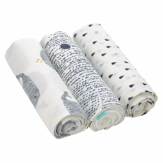 Die hübschen Bambus-Mulltücher Heavently Soft – Little Water Whale im 3er Pack von Lässig sind echte Allrounder. Du kannst die weichen Tücher als Spucktuch, Kinderwagendecke, Wickelunterlage, Schmusetuch oder zum Pucken verwenden. Sie sind zu 70 % aus nachhaltiger Viskose aus Bambusfaser und zu 30 % aus Baumwolle gefertig. Die atmungsaktiven Mulltücher sind sehr weich und werden nach jedem Waschen noch weicher. Bambus ist darüber hinaus ein sehr hautfreundliches Material und wird gleichzeitig ressourcenschonend gewonnen. Du erhältst drei der multifunktionalen Tücher, die mit unterschiedlichen, fröhlichen Aufdrucken verziert sind.