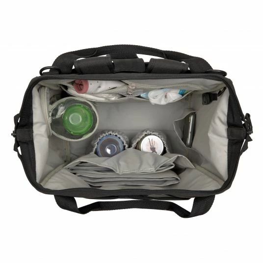 Im Lässig Wickelrucksack Goldie Up Backpack in Black findet alles Platz, was Du für Deinen mobilen Alltag mit Baby brauchst. Der schicke Alltagsbegleiter in schlichtem Design bietet neben vielen Verstaumöglichkeiten auch noch jede Menge praktisches Zubehör. Das große Hauptfach lässt sich mit einem Reißverschluss schnell und auch sehr weit mit nur einer Hand öffnen, so dass Du eine hervorragende Übersicht über alles Eingepackte hast.