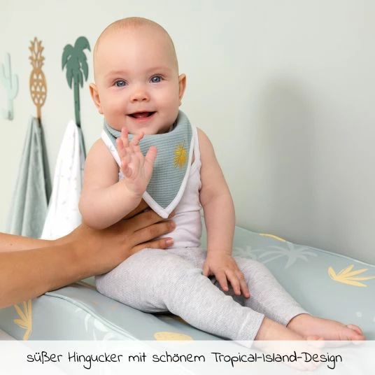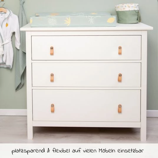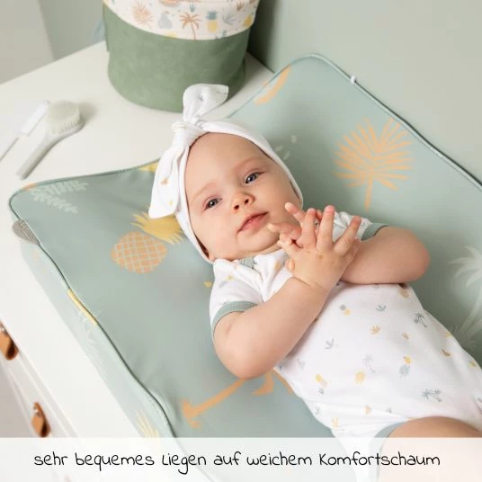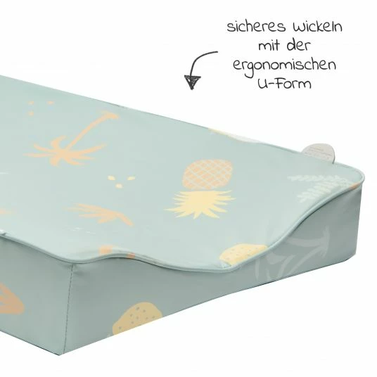 Auf der weichen Wickelauflage, bestehend aus speziellem Komfortschaum, liegt Dein Nachwuchs sehr bequem. Dabei bist Du flexibel und kannst die Auflage auf jeder vorhandenen Kommode einem anderen MΓΆbelstΓΌck mit ebener FlΓ€che nutzen. Der hΓΌbsche Tropical-Print verschΓΆnert jedes Kinder- oder Badezimmer. Die wasserabweisende OberflΓ€che ist abwischbar und so im Nu wieder sauber. Alle Materialien sind dank intensiver Kontrolle vΓΆllig unbedenklich fΓΌr Dein Baby, auch nach lΓ€ngerer Nutzung.