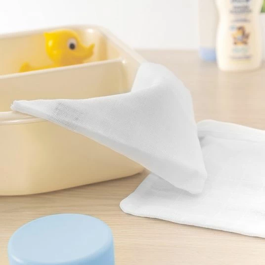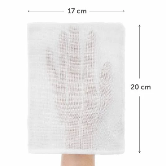 The 10er Pack gauze washing gloves in 17 x 20 cmΒ from Makian is particularly practical and universally applicable. The double-woven washing gloves made of pure cotton are ideal for gently cleaning your child’s sensitive skin. mummy or daddy can slip in with one hand and start the washing pleasure. So you can spill some food while eating. Their compact size makes them ideal companions on the go. Thanks to the high quality, the washcloths can be cleaned hygienically at 90 Β°C in the machine without bacteria.
