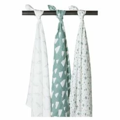 Discount 😍 Meyco 3er Pack Swaddles 120 x 120 cm – Federn Wolken Dots – Grün 🔥