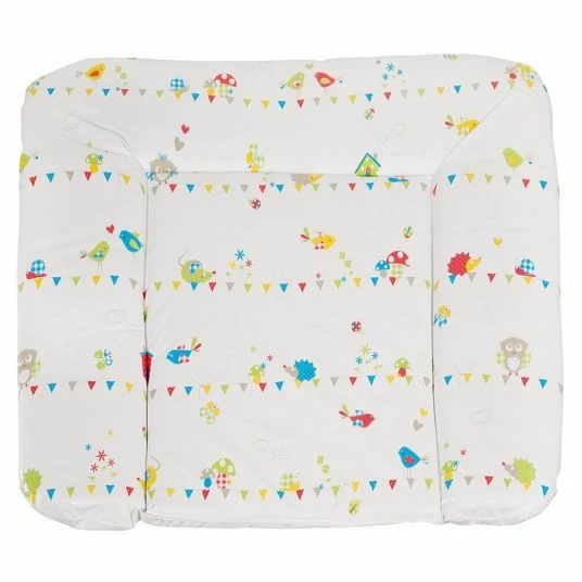 Auf der gepolsterten Folien-Wickelauflage Waldhochzeit von Roba wird sich Ihr Baby beim Ankleiden und Wickeln bestimmt besonders wohlfühlen. Die komfortable Unterlage ist mit Polyestervlies gefüllt und mit einer PVC-Folie überzogen. Sie ist mit bunten Motiven verziert und verfügt über einen erhöhten Rand an drei Seiten – so kann Ihr Nachwuchs sich nicht so leicht herumrollen und liegt sicherer. Dank der Folie ist die Wickelunterlage schnell und einfach mit einem feuchten Tuch gereinigt und so im Handumdrehen wieder einsatzbereit.