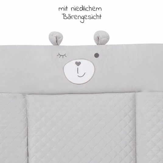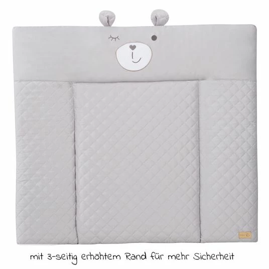Wickeln finden die Kleinsten nicht immer so toll, umso wichtiger ist es, dass sie sich an ihrem Wickelplatz wohlfΓΌhlen. Auf derΒ Roba Wickelauflage Soft β Roby Style Sammy SilbergrauΒ mit BΓ€rengesicht mit 70 x 85 cm liegt Dein kleiner Schatz gut gepolstert: Die weiche Polsterung der Auflage besteht aus flauschigem PolyesterVlies, so dass Dein Nachwuchs bequem liegen kann. Damit es dabei jederzeit mΓΆglichst sicher liegt, ist die Auflage mit einem 3-seitigen, erhΓΆhten, abgesteppten Rand ausgestattet.